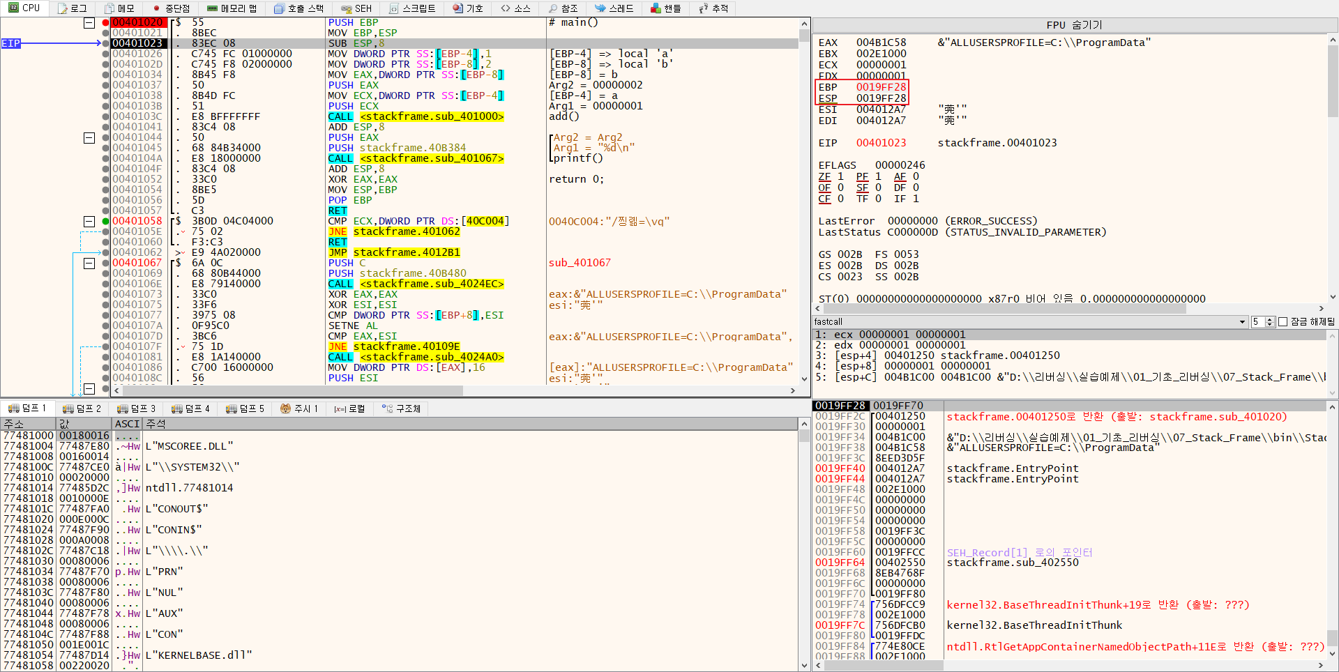 7.2.2 main() 함수 시작 & 스택 프레임 생성