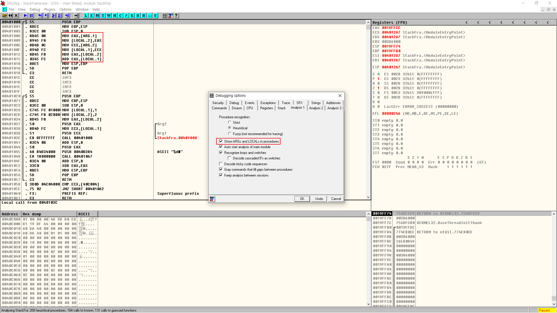 x32dbg에서 ollydbg처럼 LOCAL과 ARG를 구분해주는 설정을 찾지 못했습니다. 혹시 아시는 분은 댓글로 알려주시면 감사하겠습니다.