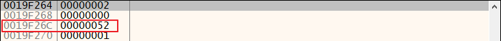 19F26C : 52의 값은 사용자가 입력한 "ReverseCore" 문자열 중 첫 번째 문자 'R'을 의미한다.