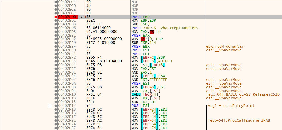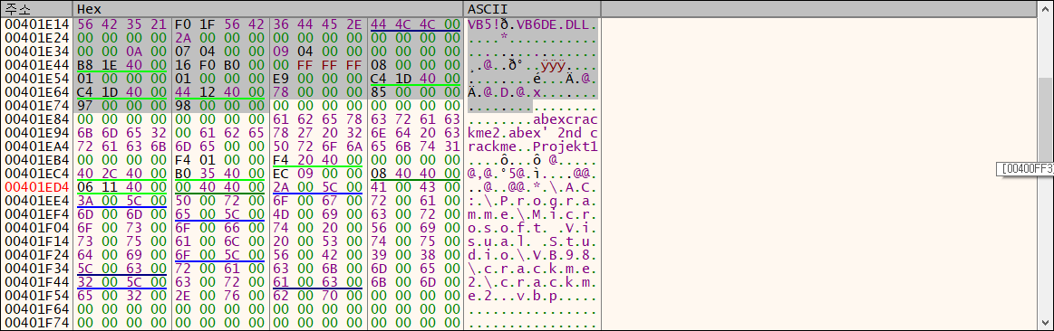 VB 파일에는 함수와 함수 사이에 NOP 명령어가 존재합니다.(402ECC ~ 402ECF)