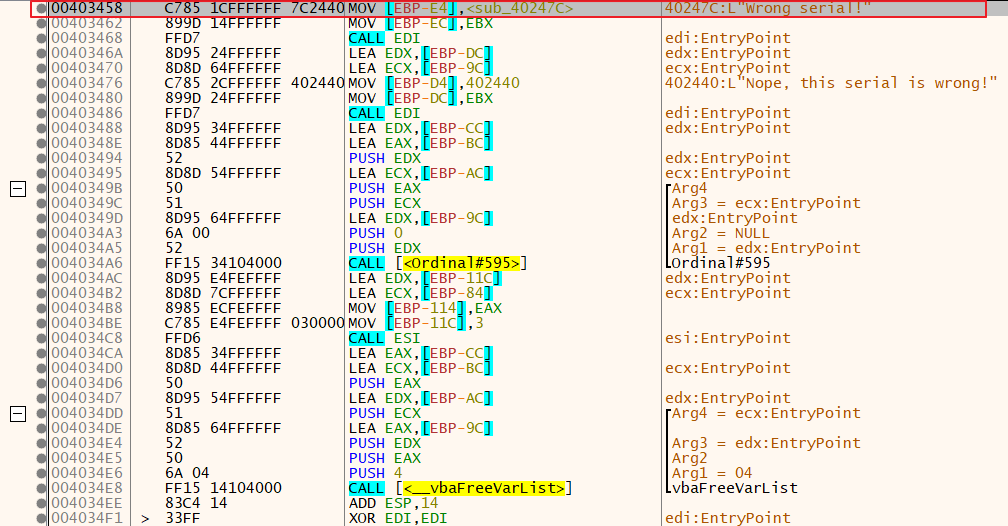 00403191 MOV EBX,DWORD PTR DS:[<Ordinal#632>] ; MSVBVM60.rtcMidCharVar