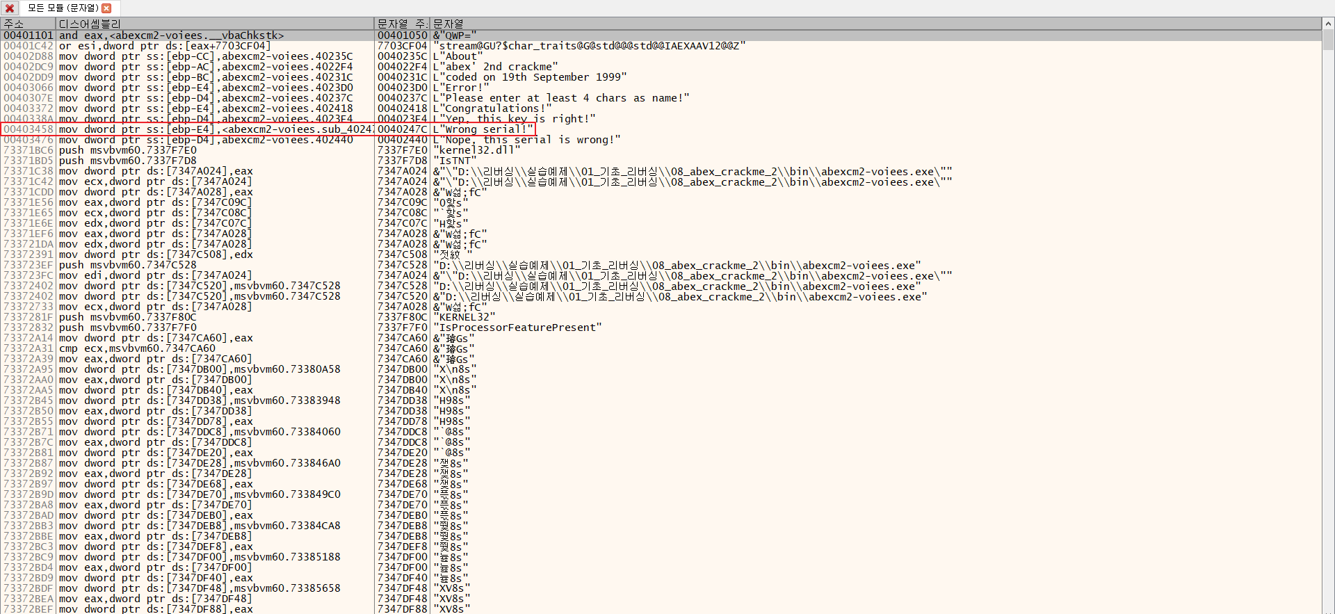 문자열 검색을 통해 메세지 박스에서 나온 문자열을 확인할 수 있습니다.