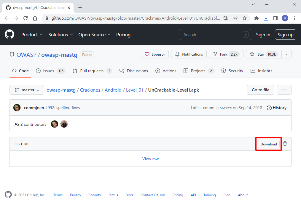 주소 : https://github.com/OWASP/owasp-mastg/blob/master/Crackmes/Android/Level_01/UnCrackable-Level1.apk