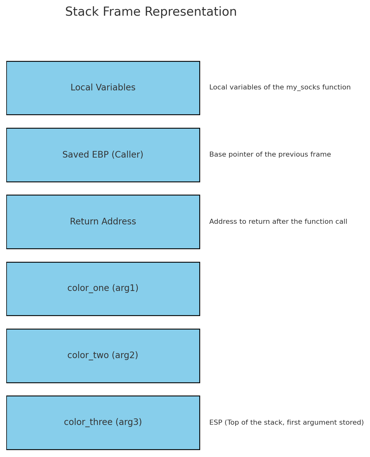 my_socks() 함수가 리턴할 때는 스택의 모든 값을 POP한다. 그리고 리턴 주소로 점프해 명령 코드를 계속적으로 실행한다.