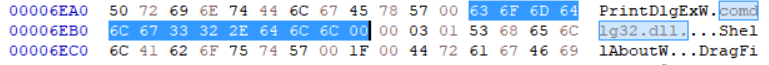 파일 Offset 6EAC에 "comdlg32.dll" 문자열이 보입니다.