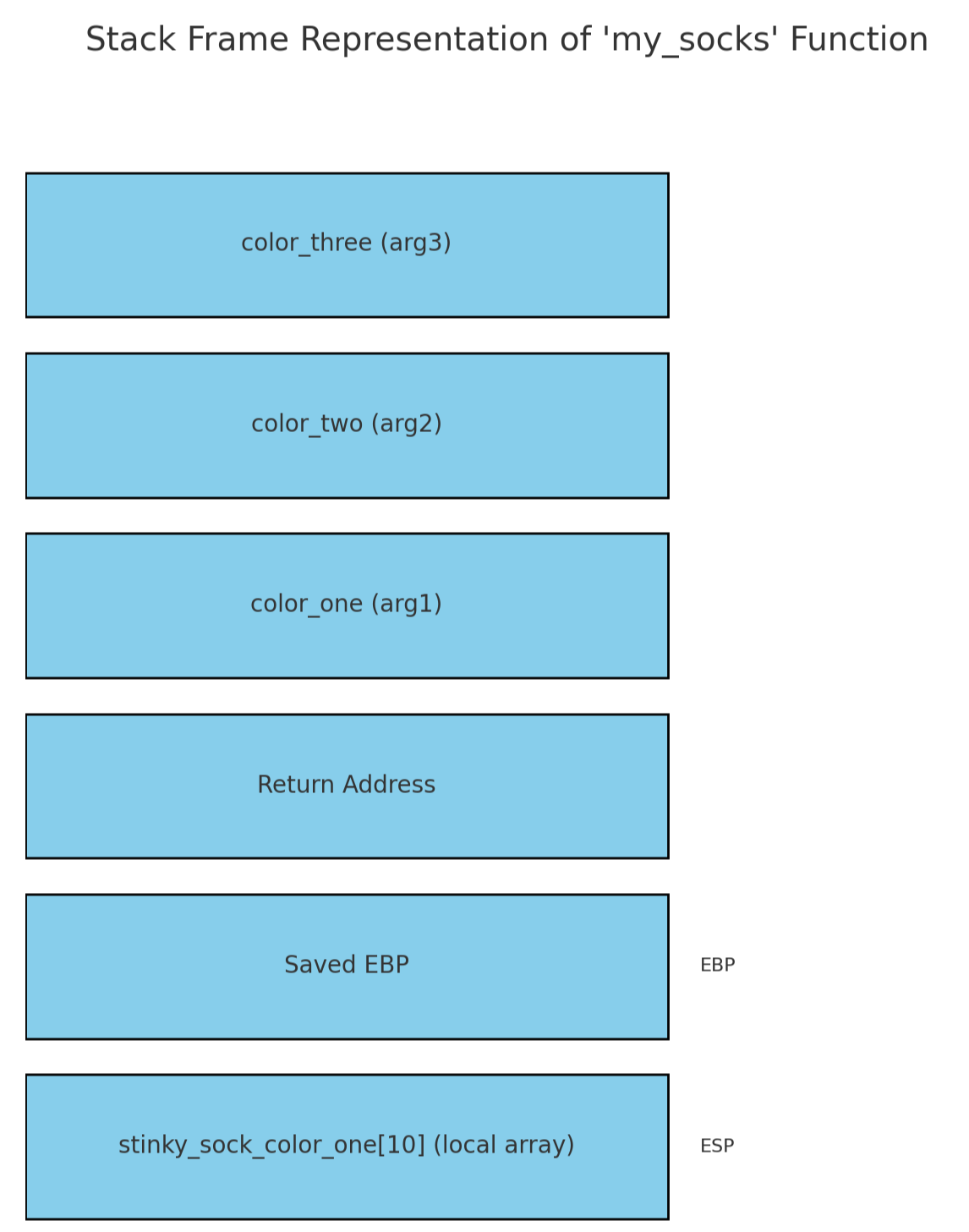 위 C언어의 스택 프레임을 그리면 아래와 같다.